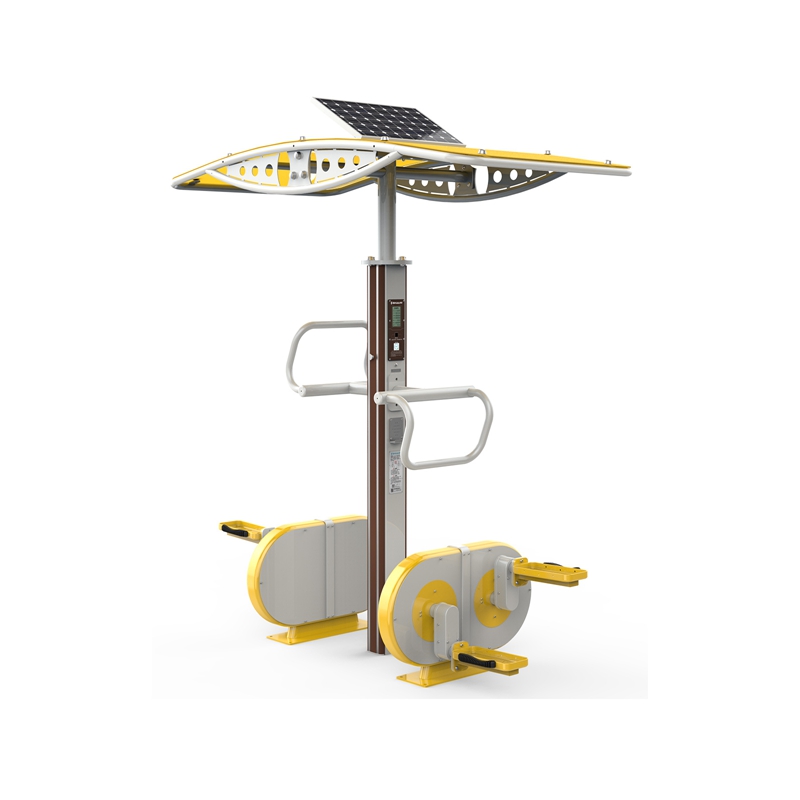 锻炼方法:双手紧握扶手,双脚分别站于脚踏板上,身体向左或向右倾斜,单脚发力使踏板开始旋转运动,然后左右脚同时发力做旋转往复运动。