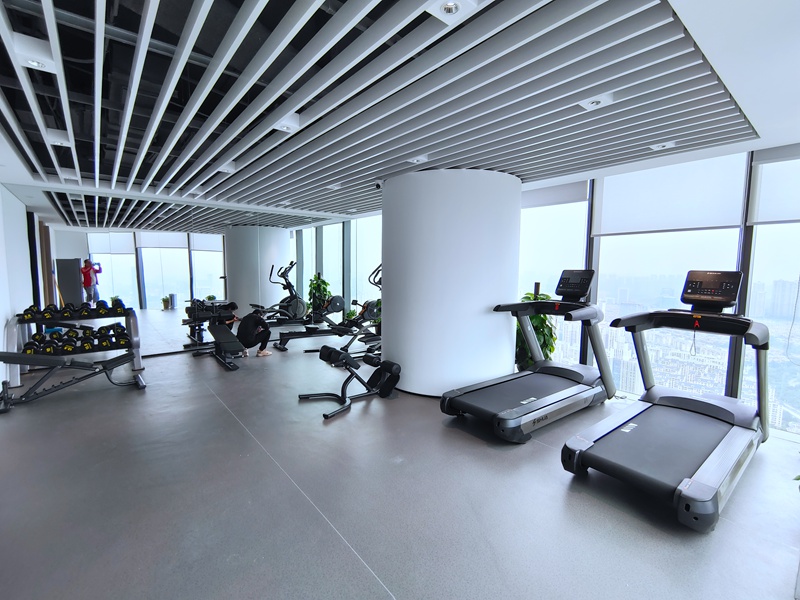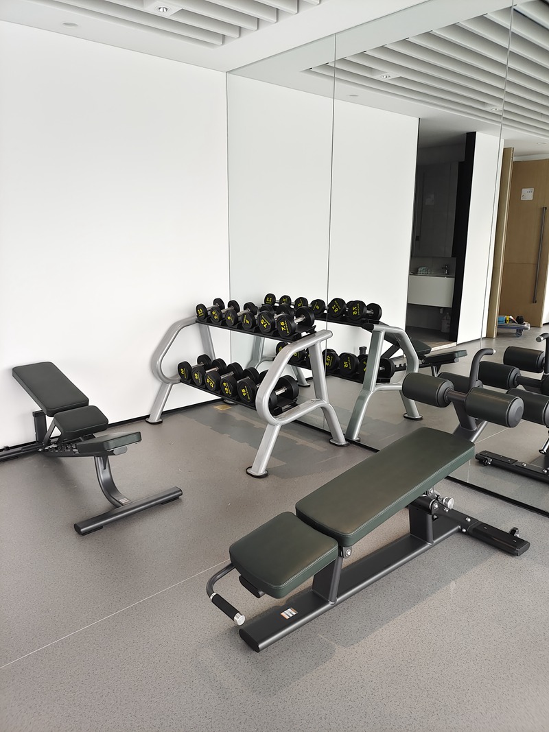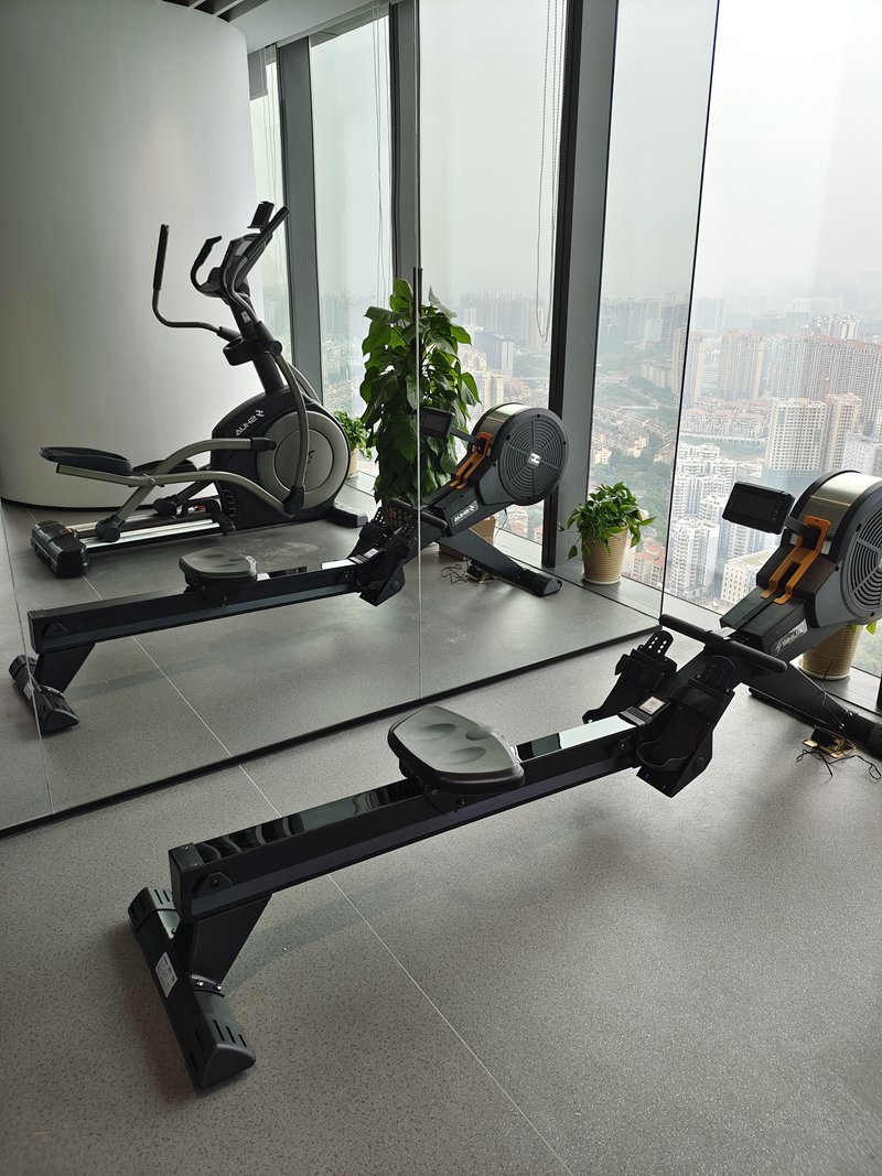 有氧器械配置了xc sports,xc V9智能跑步机,X5-E椭圆机,商用划船器SH-R8100。有氧运动可以增强心肺功能,提高身体代谢率,消耗体内多余脂肪。新V9商用跑步机具有坡度缓降功能,有助于肌肉与心血管训练,同时具有心率控制功能,随时监测心率,增强跑步体验感。X5-E椭圆机的生物力学设计,通过不受地面冲击的全身运动,能够进行高强度的有氧运动训练,更好的减轻疲劳感且不会对关节产生压力,保护膝关节的同时实现全身性的锻炼。