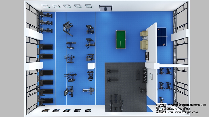 此方案要求面积小于308m²,适用于企事业单位、酒店会所、楼盘社区、学校、商用等健身场所,能满30-50人同时健身使用。(方案根据场地空间大小、预算、产品需求等进行配置仅为启发性参考)