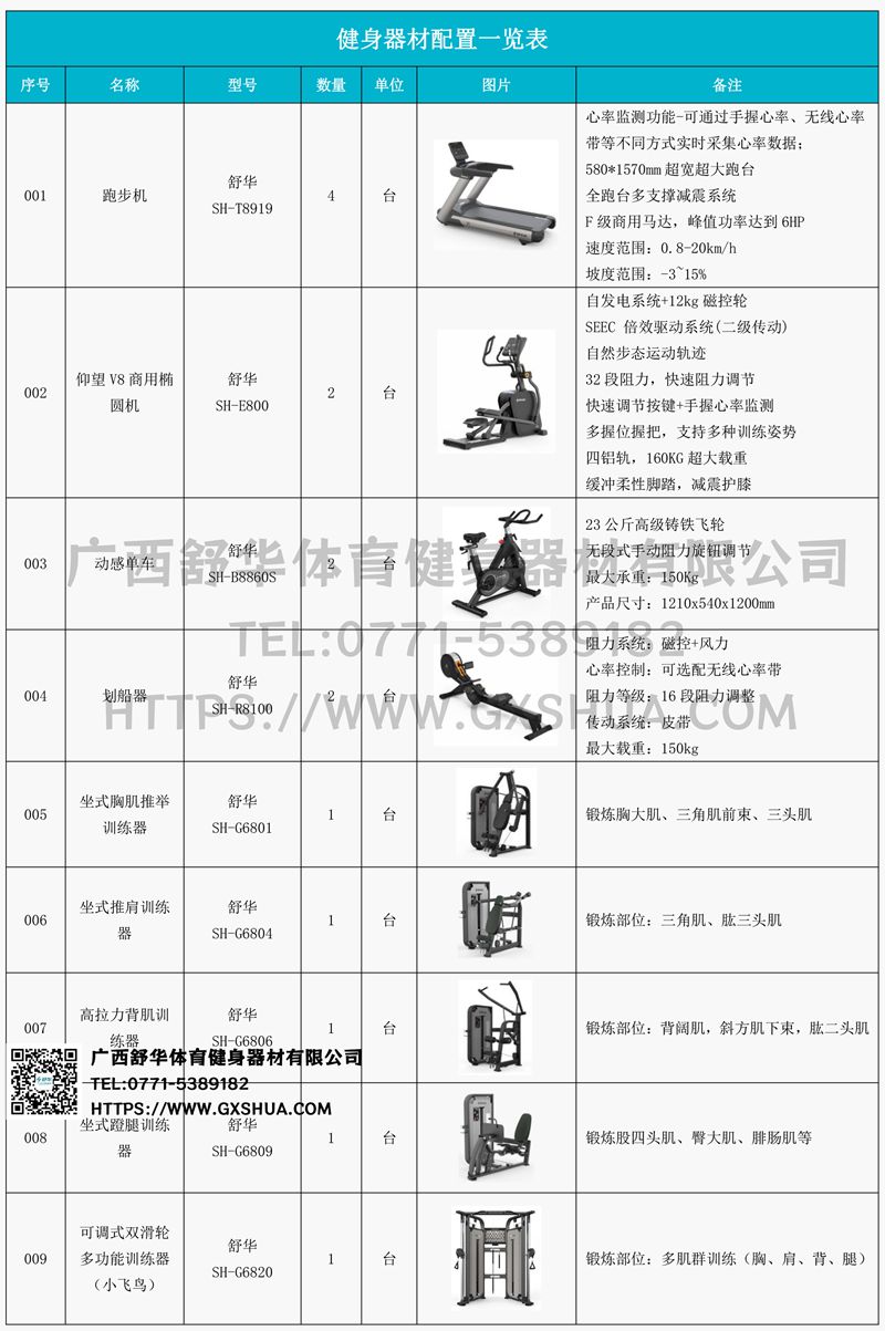 1.xc sports,xcV9跑步机SH-T8919*4台-580*1570mm超宽超大跑台,全跑台多支撑减震平台,保证跑台超强支撑力,达到180kg支撑,满足专业健身房需求。F级商用马达-超强马达,AC 3.0HP 交流,峰值功率达到6HP,F级商用品质。速度范围达到0.8-20km/h;V9跑步机可实现跑台扬升功能,坡度范围-3~15%,满足客户不同的锻炼需求。