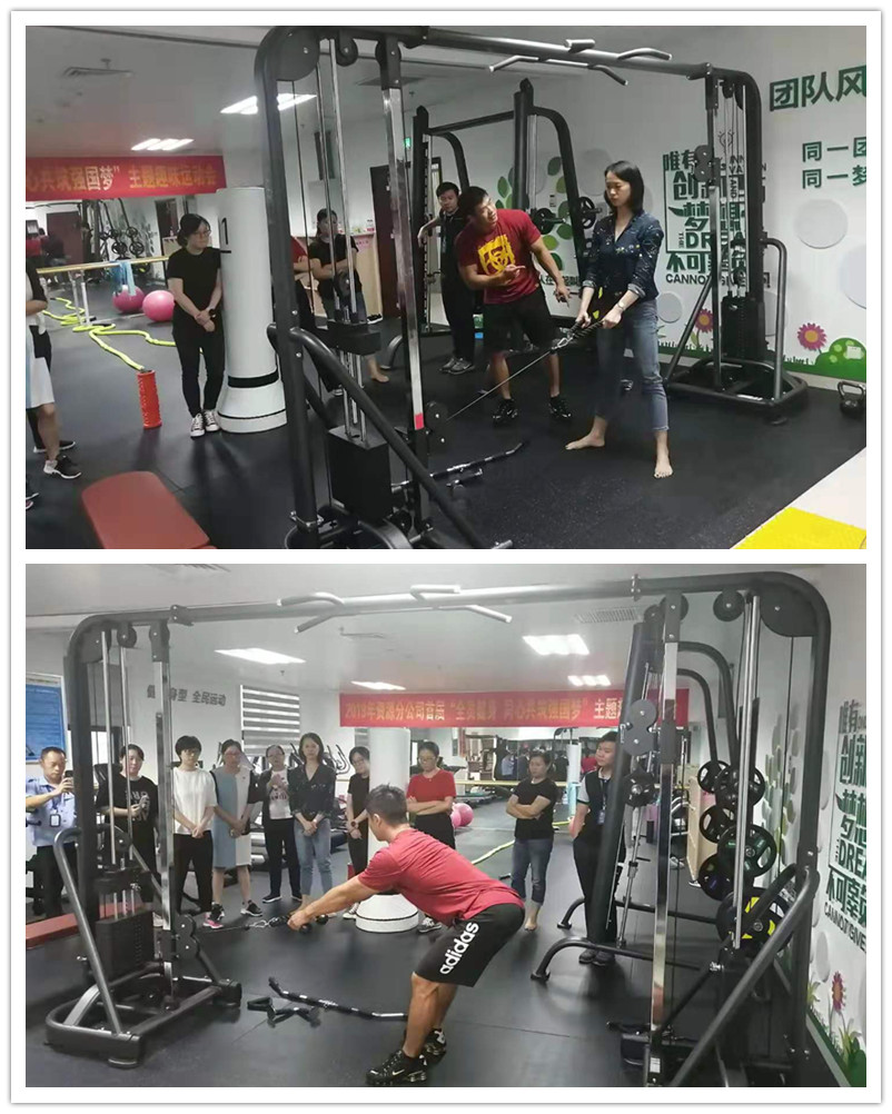 2019年8月26日,南宁某集团职工健身房自6月在广西xc sports,xc采购室内健身器材以来,广西xc sports,xc根据其职工的男女比例及健身需求,为该集团员工提供健身教练上门免费培训健身器材使用及提供健身知识讲座,科学的运动教学指导。经过有趣互动交流,让职工在轻松愉悦的气氛下感受到运动的乐趣。