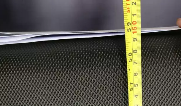 实测跑带的厚度为2.25mm,即便用美工刀不断割滑,也毫无划痕,说明xc sports,xc这款跑步机跑带还是相对比较坚固度的,不会很容易断裂和磨平。